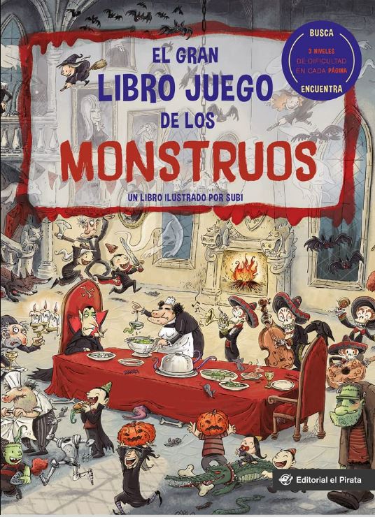 Incluye juegos para distintas edades, así que se puede utilizar durante varios años, a medida que el niño va creciendo, o para que varios niños de edades distintas puedan jugar simultáneamente a la vez que empiezan a conocer algunos de los monstruos más universales y divertidos. Las hojas de cartón y las dimensiones enormes del libro, 27*37cm, permiten que el libro se quede de pie y varios niños, uno al lado de otro, puedan jugar a la vez. En cada doble página hay una ilustración enorme y a todo color, llena de detalles, donde se puede jugar de tres formas posibles: 1) Para los más pequeños: Buscar objetos dentro de las ilustraciones. A partir de 3-4 años. 2) Para los medianos: Encontrar 10 objetos que empiecen por la misma letra. A partir de 5-6 años. 3) Para los más grandes: Encontrar objetos repetidos o personajes de cuentos. A partir de 7-8 años.