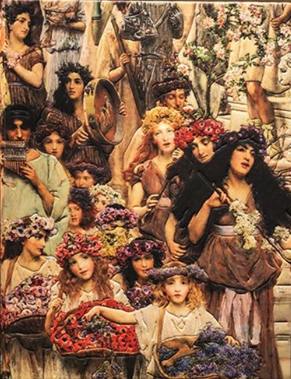 Lawrence Alma-Tadema En su obra Primavera (1894), Lawrence Alma-Tadema representa la costumbre victoriana de enviar a los niños a recoger flores el 1 de mayo, si bien sitúa la escena en la antigua Roma. Todo es de probada verosimilitud: los detalles arquitectónicos y escultóricos, la vestimenta e incluso los instrumentos musicales.